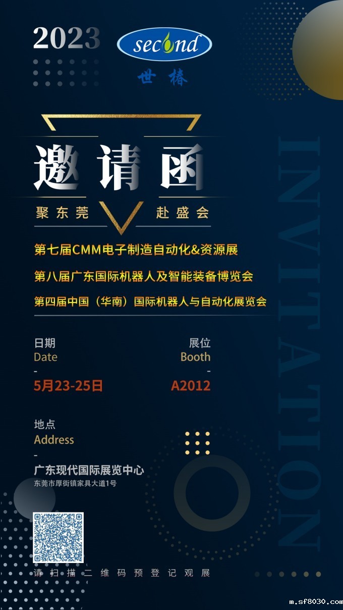 5月23-25日,第七届CMM电子制造自动化&资源展(CMM展)暨第八届广东国际机器人及智能装备博览会(广东智博会)暨第四届中国(华南)国际机器人与自动化展览会(华南机器人展IARS)将在广东现代国际展览中心(东莞厚街)举办。世界杯现场直播平台(简称世界杯现场直播平台智能)作为受邀参展企业之一,将携核心技术产品及工业智能装备整体解决方案亮相,展位号:A2012。诚挚地邀请您相聚于此,共商新技术,共享新趋势。