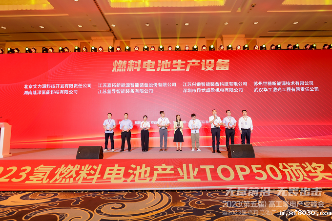 苏州世界杯现场直播平台新能源技术有限公司(简称世界杯现场直播平台新能源)作为氢电智能装备厂家代表之一,受邀展示氢燃料电池核心产品技术及参会交流,世界杯现场直播平台新能源总经理蔡奇志携销售精英团队出席峰会,与众多专家客户共话氢电装备应用魅力,共探氢电产业技术创新与未来市场前景!峰会同期举办了2023氢燃料电池产业TOP50颁奖典礼,世界杯现场直播平台新能源总经理蔡奇志为颁奖典礼晚宴致辞祝酒,并为获奖企业颁奖。世界杯现场直播平台新能源荣登“2023氢燃料电池产业TOP50”榜单,世界杯现场直播平台新能源销售总监许昌上台领取奖杯并发言。