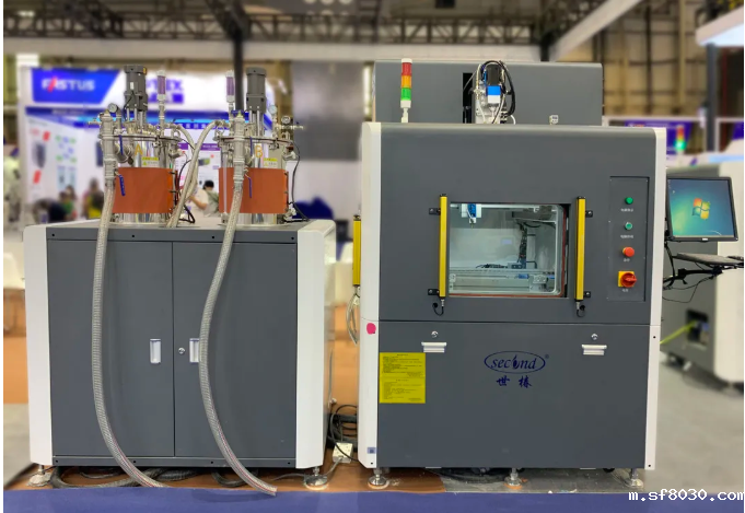 在线式真空灌胶机 在线轨道式输送,可连接接驳台和固化炉等设备,全自动流水线式真空环境下灌封作业,德国进口真空泵,抽速快,噪音低,真空箱密封性高,真空度自主可调。在线式真空环境下自动灌胶,产品要求较高,自动化程度高,通常应用于汽车制造、电容线圈、变压器、继电器、电源等灌胶线
