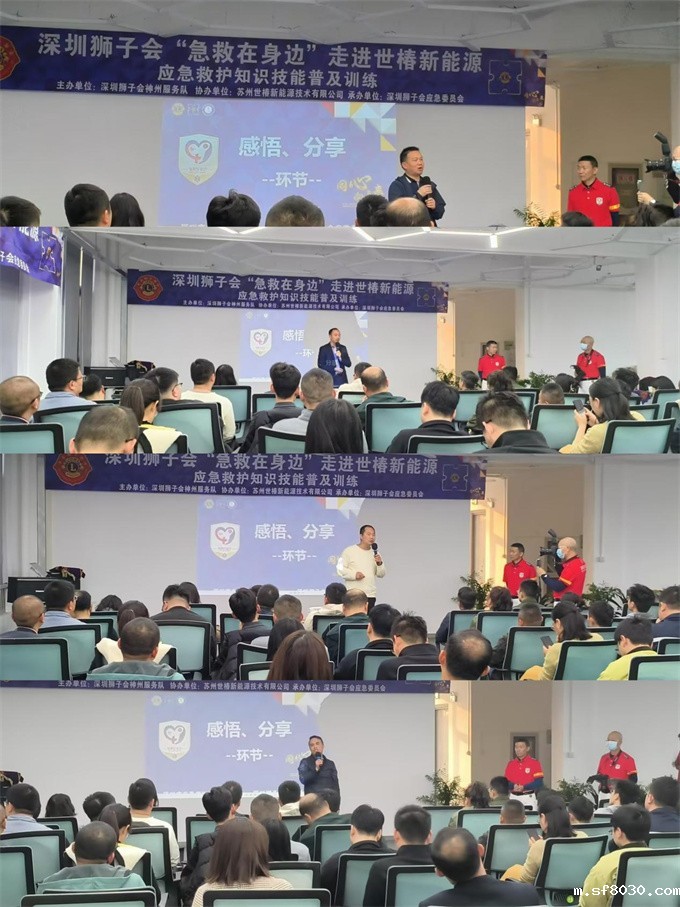 时军伟狮兄,张晓亮狮姐,雷高清狮兄分别为本次活动致辞。时军伟狮兄对深圳狮子会各位领导和狮友们的远道而来表示热烈的欢迎和感谢,对“急救在身边”项目的公益服务给予了高度认可!他希望以这场活动为契机,把深圳狮子会在急救等方面的专业知识和技能带到苏州世界杯现场直播平台新能源并不断推广延伸。他要求参加培训的世界杯现场直播平台新能源职工认真学习,积极互动,全面提升应急救护技能,为社会的安全和进步贡献更多力量,让爱传递,让温暖延续,为生命添彩!