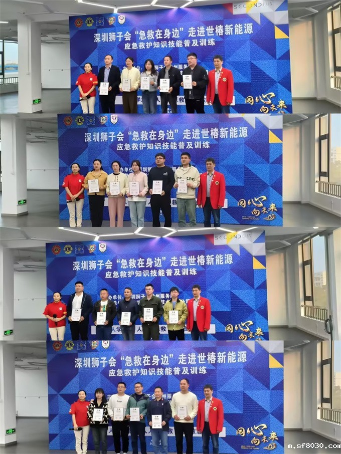 深圳狮子会神州服务队2023-2024年度队长张晓亮狮姐,深圳狮子会应急委员会2023-2024年度主席雷高清狮兄,深圳狮子会信兴服务队兼应急委员会执行主席陈政狮兄,深圳狮子会南海服务队兼应急委员会执行主席雷四成狮兄,深圳狮子会神州服务队2023-2024年度第二副队长张广军狮兄,深圳狮子会合一服务队2023-2024年度第二副队长刘安迪狮姐,深圳狮子会泰安服务队2023-2024年度第二副队长吴香雅狮姐,深圳狮子会神州服务队2023-2024年度财务长、世界杯现场直播平台董事长时军伟狮兄,以及深圳狮子会各服务队狮兄狮姐等出席本次培训活动。世界杯现场直播平台新能源50余名学员通过培训考核顺利结业。