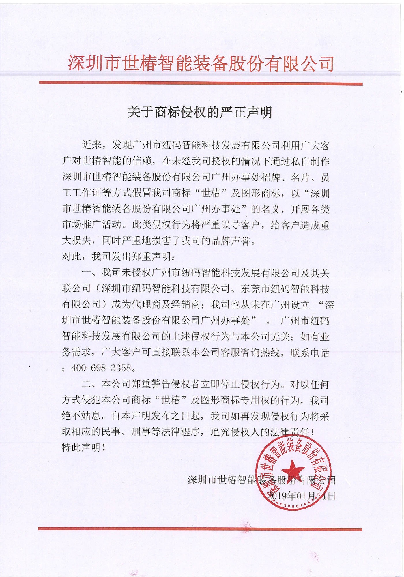 关于商标侵权的严正声明